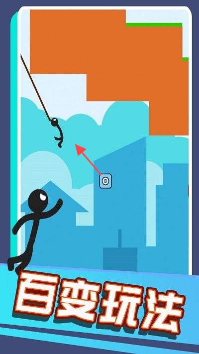 3、简单操作乐趣:游戏操作简单,玩家只需轻点屏幕控制火柴人的绳索,即可展开趣味十足的跳跃闯关之旅,轻松上手却充满挑战。