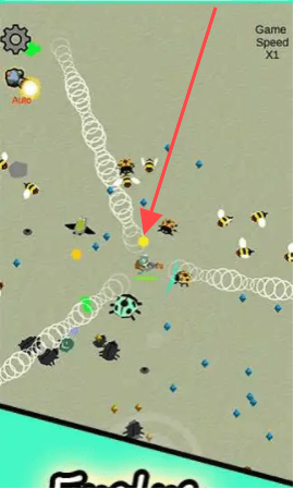 3、遇到蜜蜂怪物时,跟随红色箭头方向操作角色,在躲避蜜蜂攻击的同时,寻找时机消灭怪物,收集掉落物品。