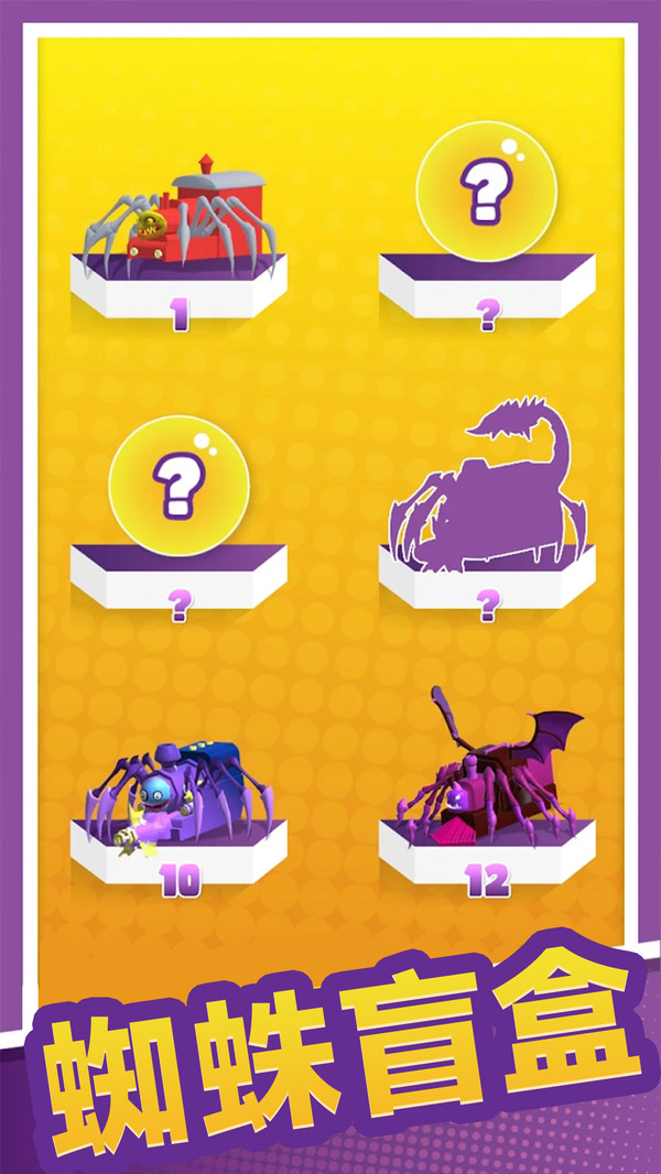 1、蜘蛛合成进化:在关卡中收集散落的蜘蛛怪物通过合并相同个体实现等级提升,从萌系圆胖造型逐步进化为带有机械质感的战斗形态,解锁如喷射蛛丝蛛网牢笼等。
