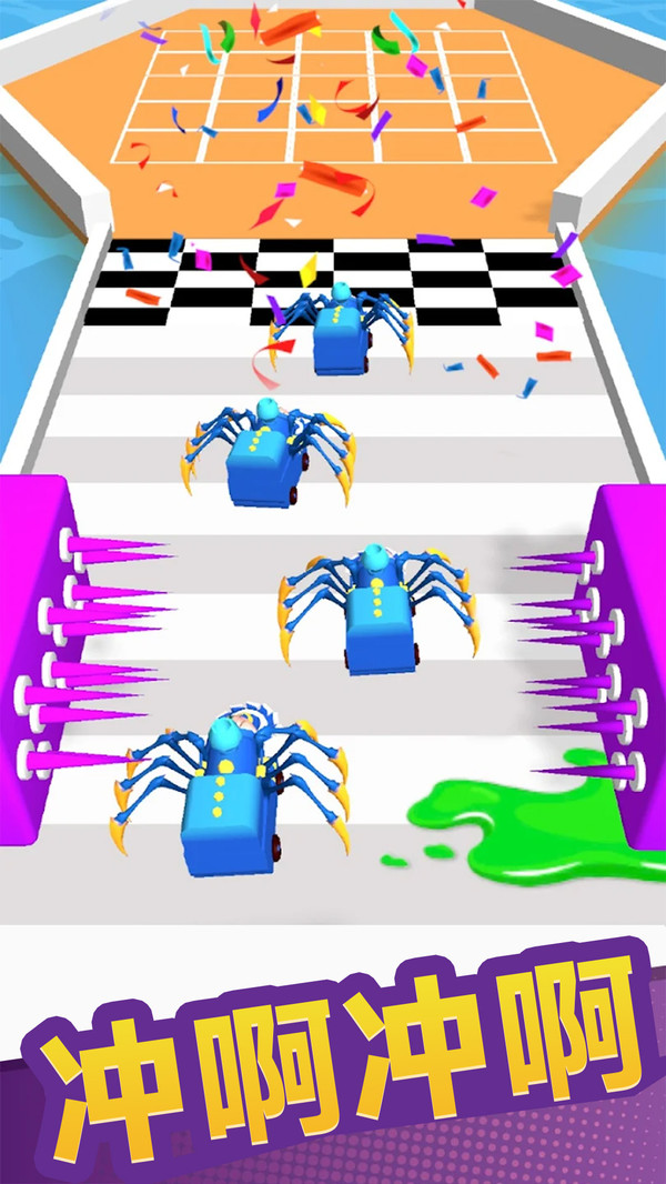 3、休闲策略结合:操作上采用简单的触屏滑动控制方向点击释放技能,同时融入策略元素,玩家需规划资源分配优先升级高收益蜘蛛类型,利用地形机关如弹簧字母传送门。