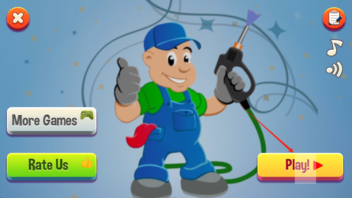 1、点击按钮开始游戏,制定清洗顺序计划,优先处理大面积顽固污渍,再进行细节的清理,提高效率。