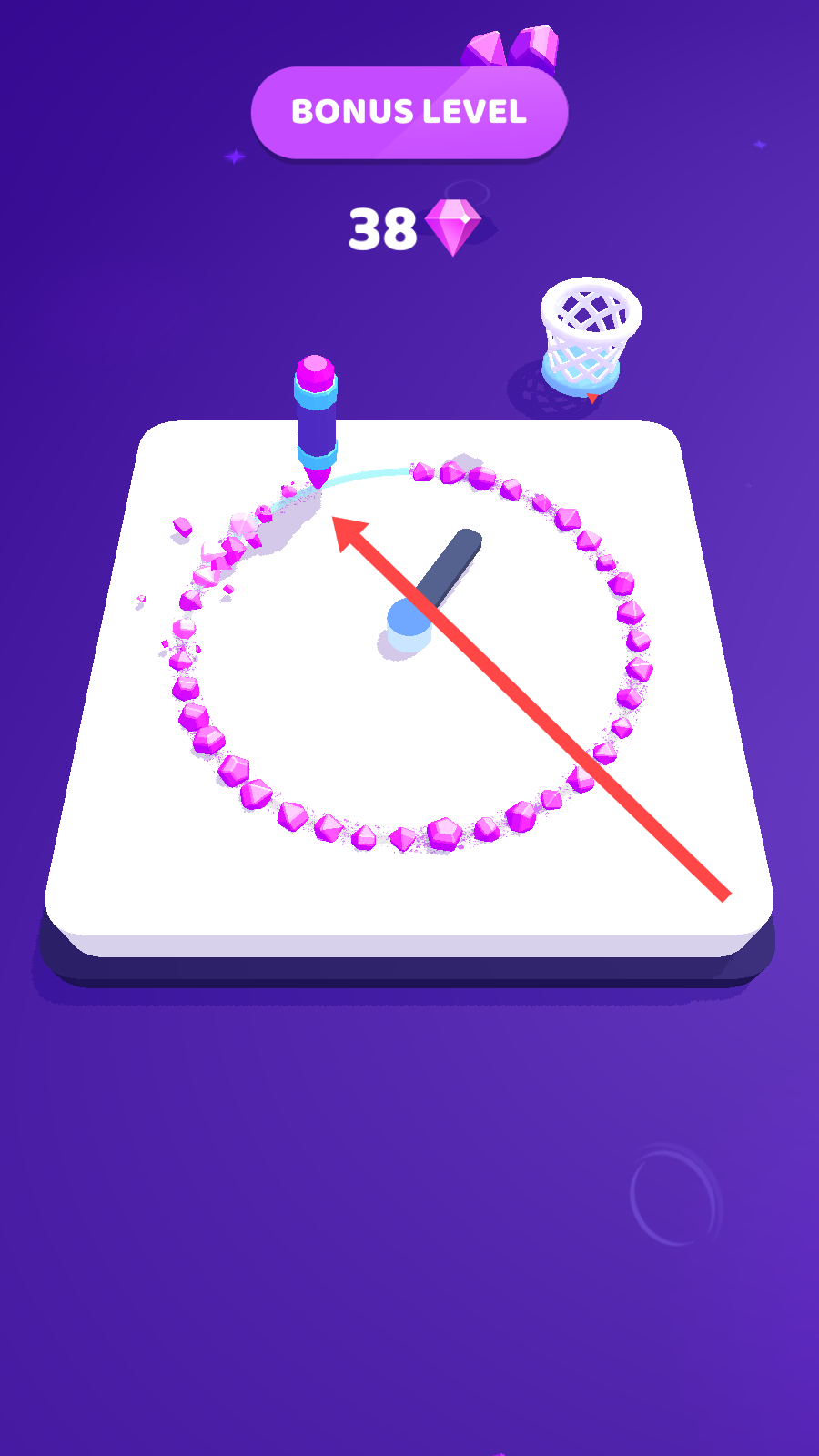 3、在绘画过程中,操控屏幕上的彩笔,使其在场景中移动,当彩笔靠近钥匙时,精准控制其拾取钥匙。