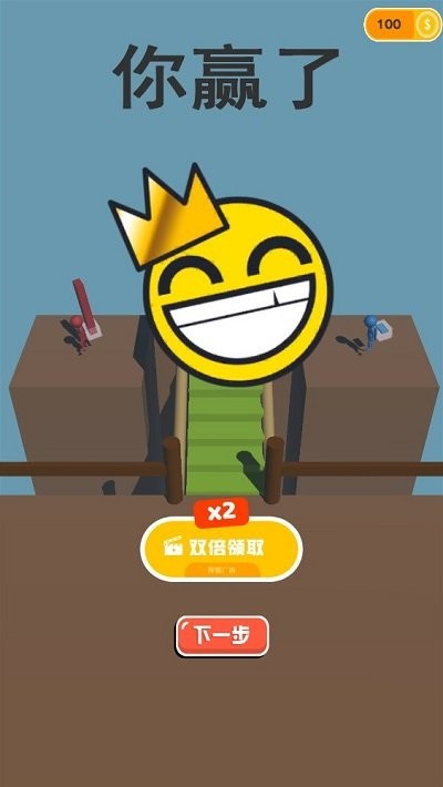 3、率先到达终点获胜,获胜后可选择“双倍领取”奖励,获取金币等游戏资源,然后进入下一步游戏。