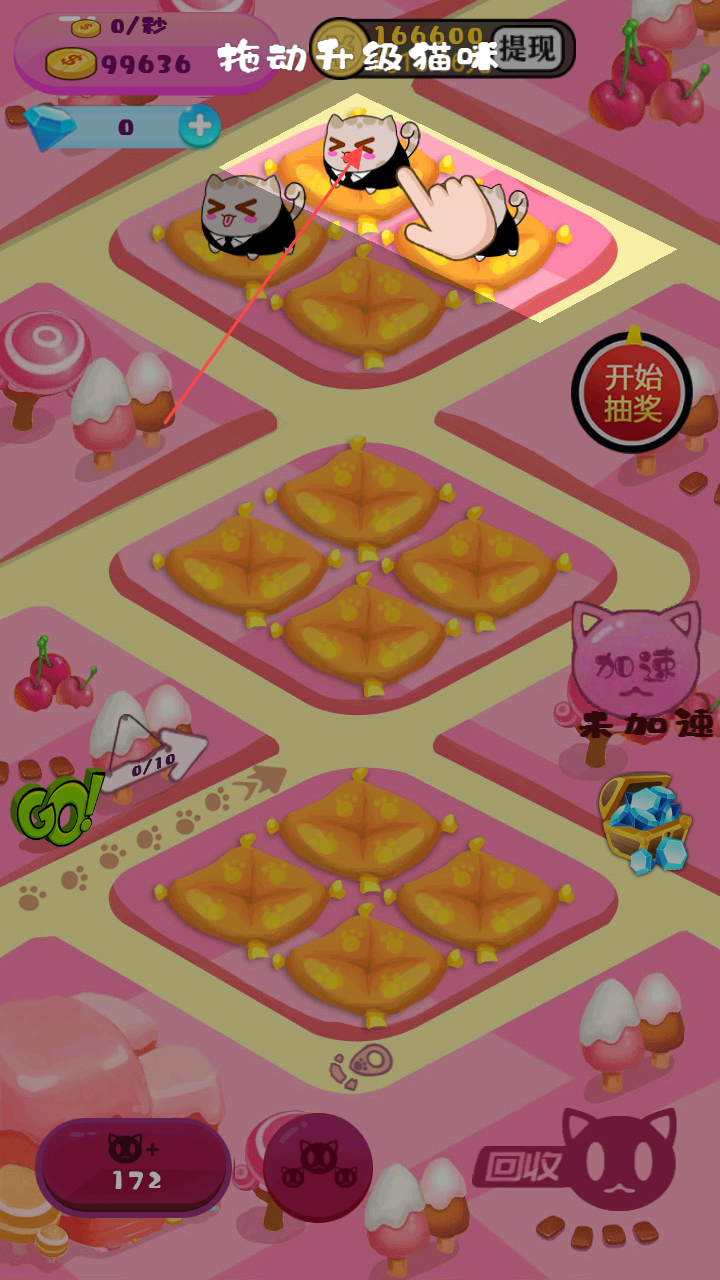2、购买后,按【拖动升级猫咪】提示,拖动猫咪进行合并升级,提升猫咪等级,增强后续收益能力。