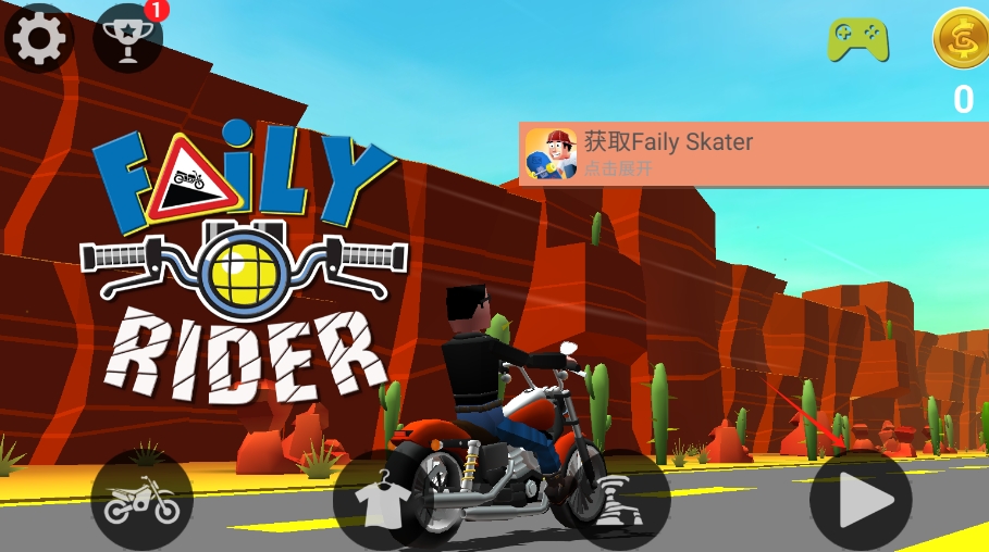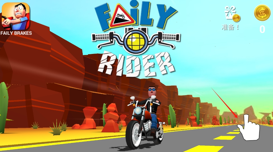 1、点击FailyRider游戏界面中手指指示处,开启摩托车骑行冒险之旅。