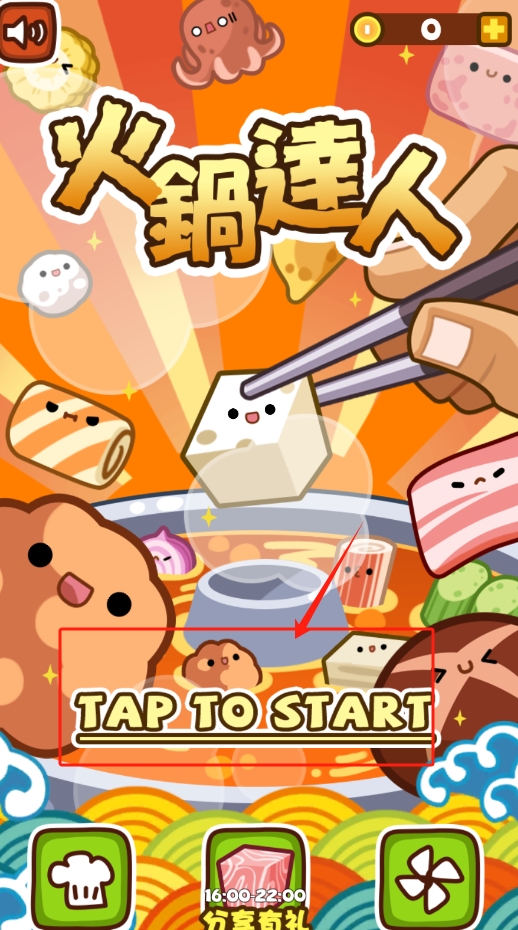 1、点击火锅达人界面中的TAPTOSTART,正式开启趣味火锅美食游戏。