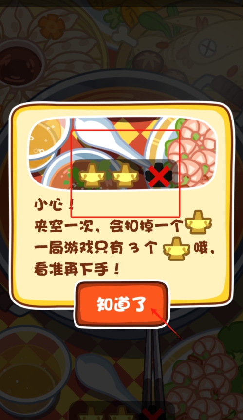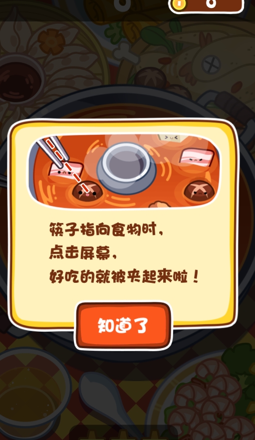 1、精准夹取食物:玩家密切关注锅内食物的起伏和筷子的延长线,找准时机点击屏幕,成功夹取食物,考验反应和操作能力。
