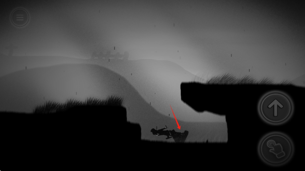 1、在屏幕的左边指尖滑动屏幕,即可移动角色人物,点击向上箭头即可跳跃。