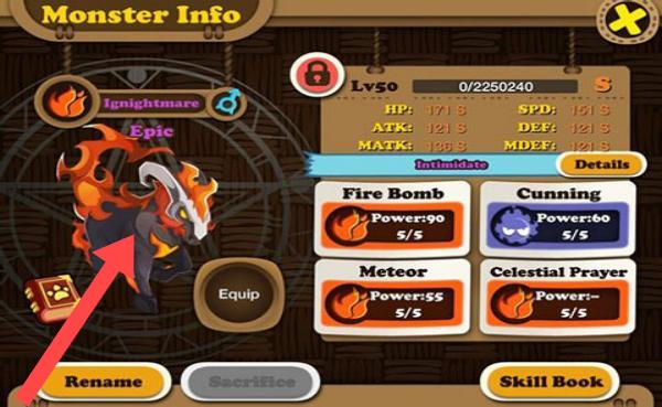 2、针对名为Ignightmar的史诗级怪物,可利用其【FireBomb】【Cunning】等技能,通过装备道具、学习技能书等方式,提升其战斗能力。