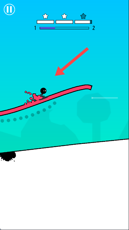 2、在游戏,滑动屏幕划线,操控黑色小球在红色轨道上前进,注意躲避障碍。