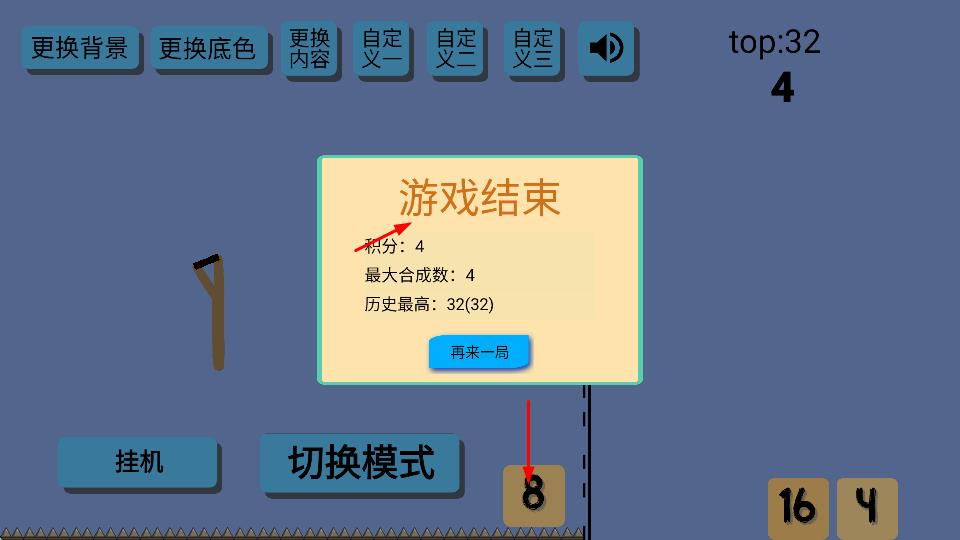 3、玩家可通过“更换背景”“更换底色”“更换内容”等按钮自定义游戏画面,还能使用“切换模式”改变游戏玩法。