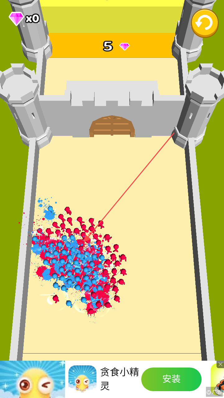 3、极简卡通视觉风格:采用清新手绘风格呈现战场场景,士兵移动触发滑稽动作,城堡攻占后绽放烟火特效,搭配鼓点音效与策略界面提示,营造轻松上手的战争模拟体验。