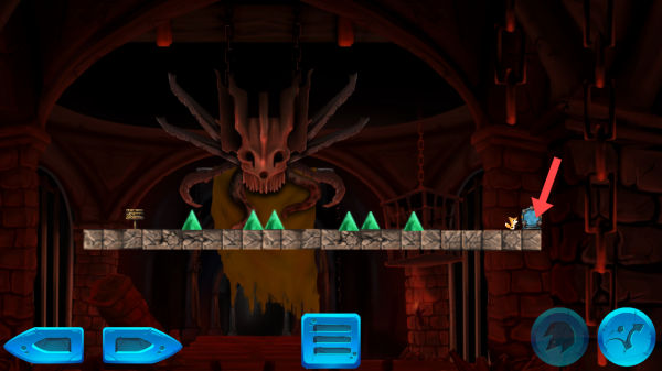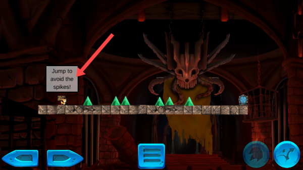 2、在游戏关卡游玩中你遇到尖刺时,可以按照提示的来进行操作跳跃躲避这些尖刺。