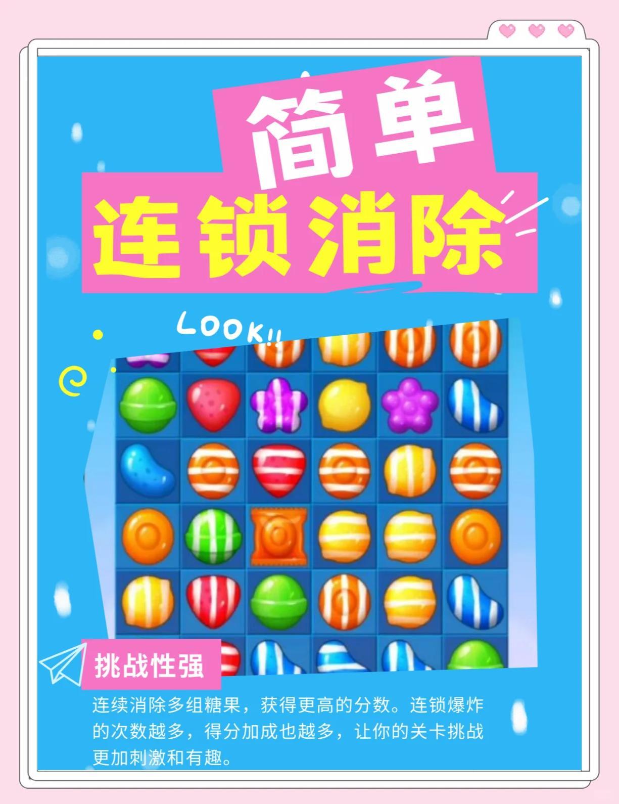 2、探索关卡挑战:不断挑战不同关卡,面对多样化的过关条件,如消除指定数量软糖、清除特定障碍物等,在探索中体验乐趣。