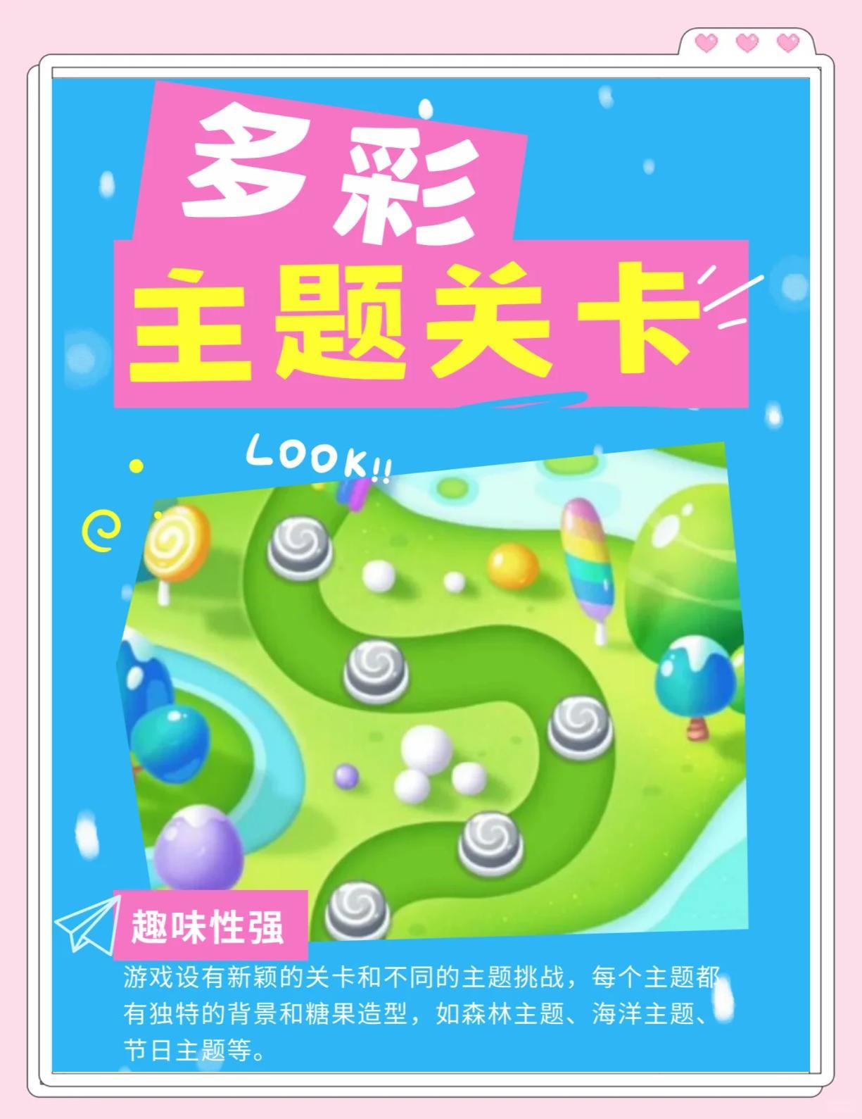 3、挑战多彩主题关卡,体验森林、海洋、节日等不同主题,每个主题有独特背景和糖果造型。