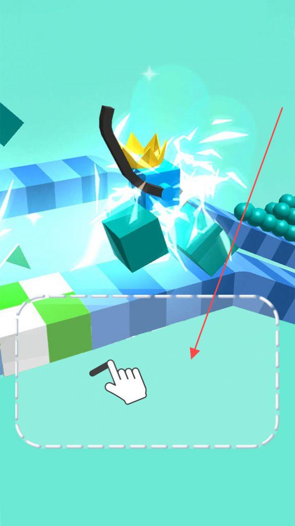 2、在不同场景中(如蓝绿色调的木板路径),持续滑动手指调整角色移动方向,确保角色顺利通过路径,体验游戏的关卡挑战。