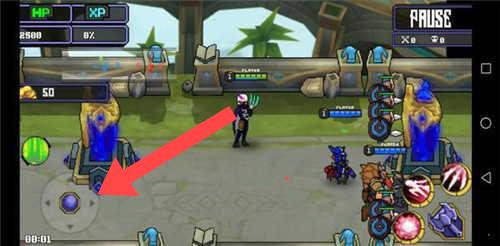 2、踏入游玩场景,在屏幕一侧找到虚拟轮盘,手指按住轮盘并灵活滑动,便能精准操控角色在地图中上下左右移动。
