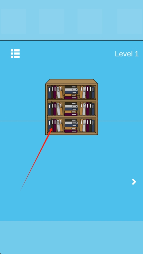 1、游戏第一关,将书架上所有的书都拨下来,平板就藏在书的后面。