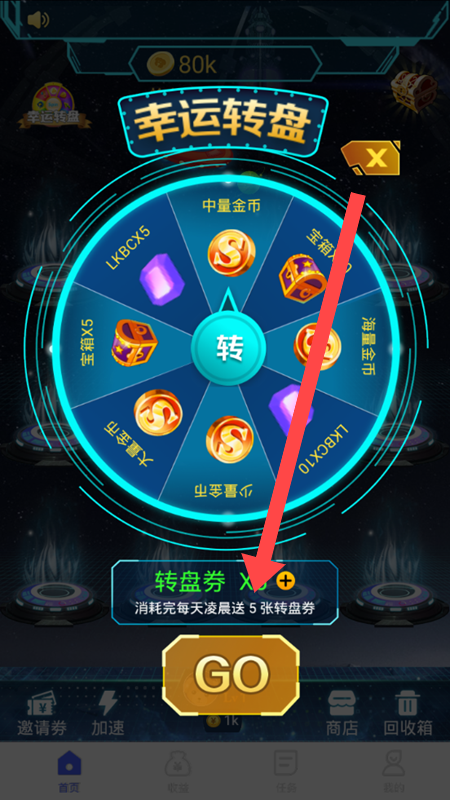 2、进入转盘页面后,目光锁定醒目的【GO】按钮,点击一下,转盘便飞速转动起来。