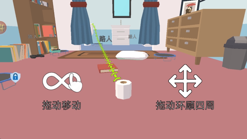 2、拖动人物即可移动,化身隐藏物之后,拖动视角即可环顾四周。