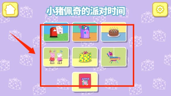 4、进行互动游戏,与动画角色一起玩耍,享受派对时光。