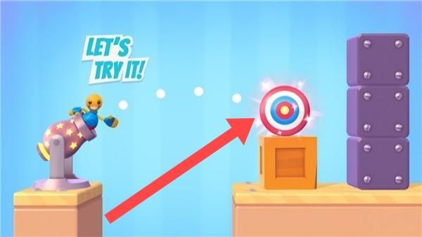 2、进入游玩场景后,集中目光,精准调整角度,在合适的时机果断按下发射键,让小人朝着目标飞驰而去。