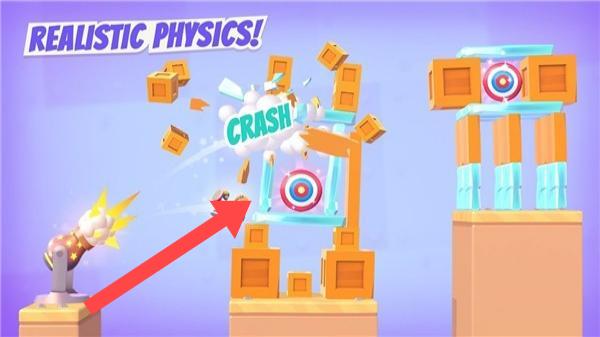 1、精准瞄准射击:不断调整炮弹发射角度与力度,进行精准瞄准,只有成功命中目标,才能解锁进入下一轮关卡。