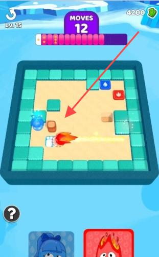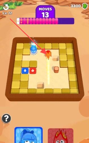 1、游戏中留意【MOVES】剩余步数,合理规划蓝色和红色角色的移动路径,优先清除阻碍,让角色靠近对应元素标识。