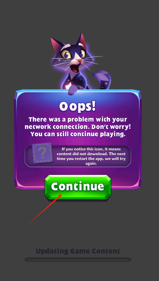 1、出现网络连接问题提示时,点击绿色Continue按钮,继续未完成的操作。