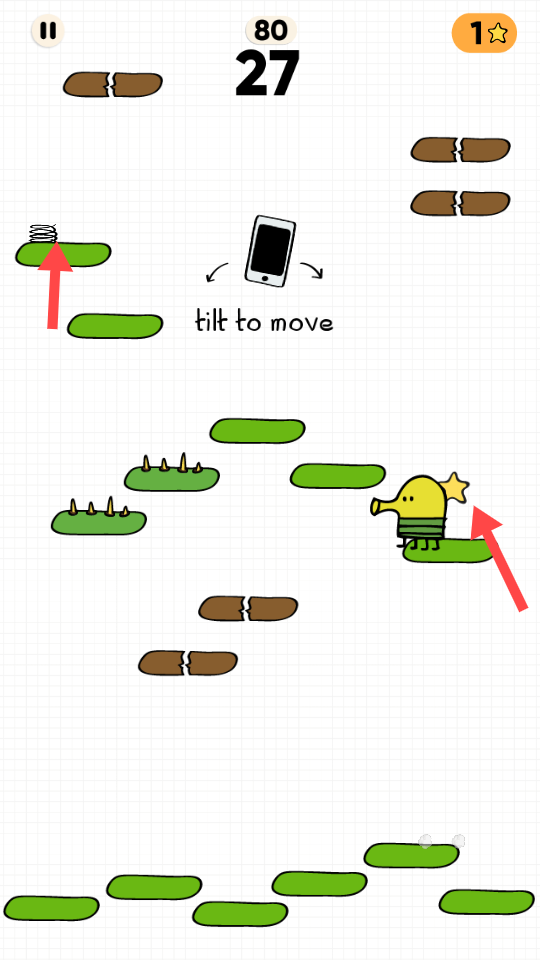 1、摇动控制跳跃:通过摇动手机控制角色跳跃方向和力度,需掌握好节奏,在随机生成的平台间精准跳跃,避免掉落。