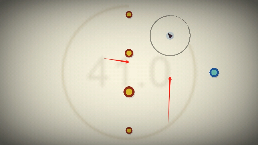 3、用圈子移动靠近蓝色时候,要注意躲避开红色小球,否则游戏将会失败。