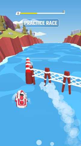 3、在操控船只在河流中行驶,躲避赛道上的障碍物【如红白栏杆】,确保顺利通过赛道。
