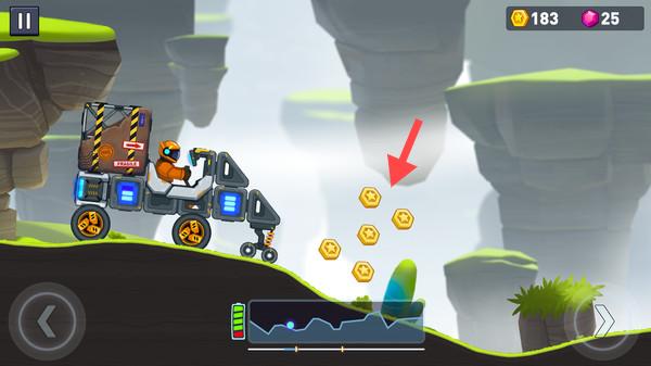 1、车辆组装调试:进入关卡前根据星球环境选择零件,组装适合的太空车,调试车轮间距引擎功率等参数,确保车辆性能匹配地形需求,为后续探险奠定基础。