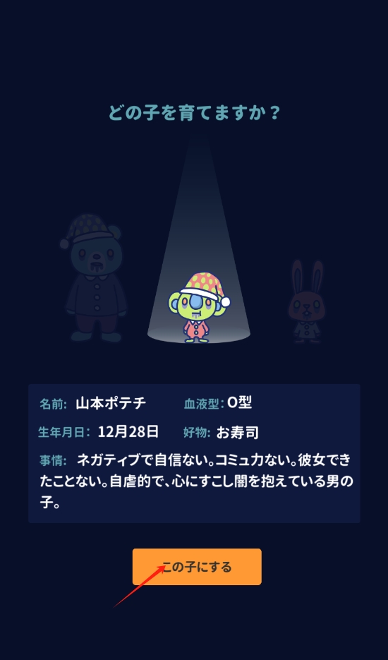 2、面对不同角色信息,如山本ボテチ,根据喜好选择要培育的角色。