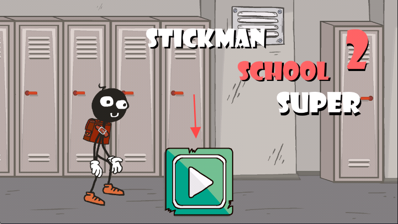 1、进入游戏界面,点击箭头所指的绿色【播放按钮】,开启【STICKMAN SCHOOL SUPER 2】游戏。