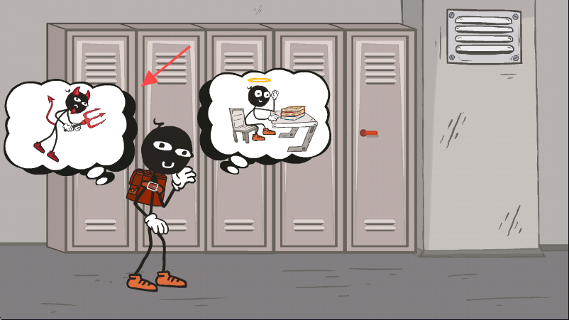 2、游戏里,留意火柴人旁边的思想泡泡,按箭头指示选择对应的泡泡内容,做出选择。