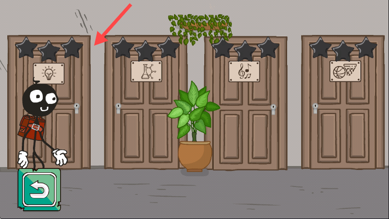 3、面对不同图标装饰的门时,按箭头指示点击对应门,进入相应场景。