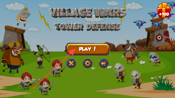 1、在《Village Wars Tower Defense》游戏主界面,点击【PLAY!】按钮,进入游戏地图选择界面。