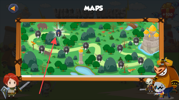 2、在地图界面中,选择关卡如关卡1,点击进入游戏战斗场景,开启塔防战斗之旅。