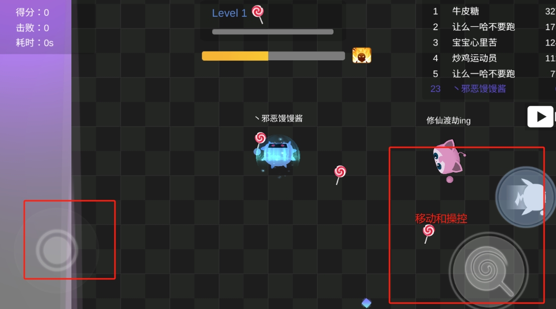 3、多元策略玩法:玩家可利用冲刺追击或躲避,通过摇杆操控、投掷糖果等,在对战中施展多样策略。