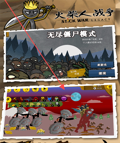 2、进入【无尽僵尸模式】,可选择【新游戏】或【继续】,通过击杀僵尸积累数量,提升个人最好成绩。