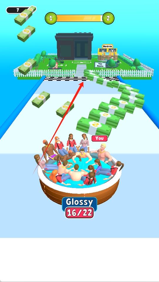 2、赛道冲刺与平衡:在赛道上奔跑时,通过倾斜设备或触控操作调整浴缸平衡,保持水平状态以维持最高速度。
