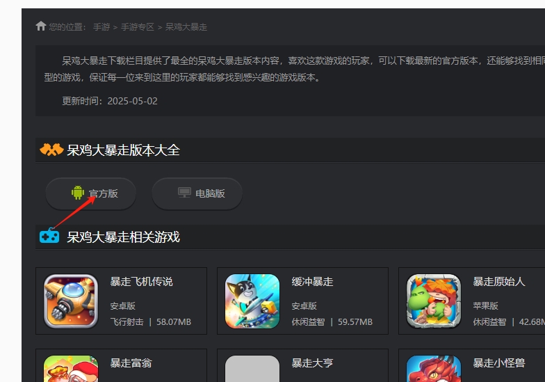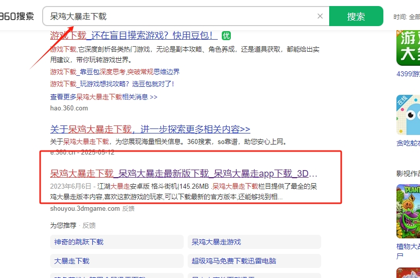 1、在网站上搜索呆鸡大暴走下载,并点击图片标记的链接进去下载。