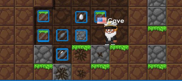 1、在洞穴场景中,操控角色收集【Cave】周围的物品,如石头、矿石等,注意躲避陷阱,探索每个角落获取资源。