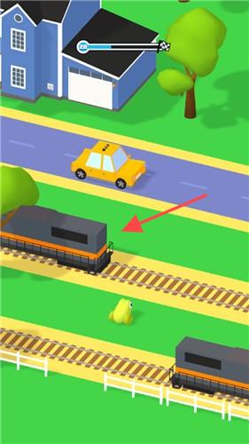 2、当青蛙到达铁轨区域,观察火车动态,及时躲避以避免碰撞,保障青蛙安全,延续游戏进程。
