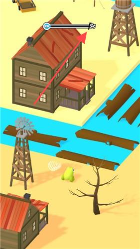 3、在不同场景中,如遇河流、房屋等,依指示方向引导青蛙,如箭头指向房屋时,助其前往以完成关卡任务,体验游戏乐趣。