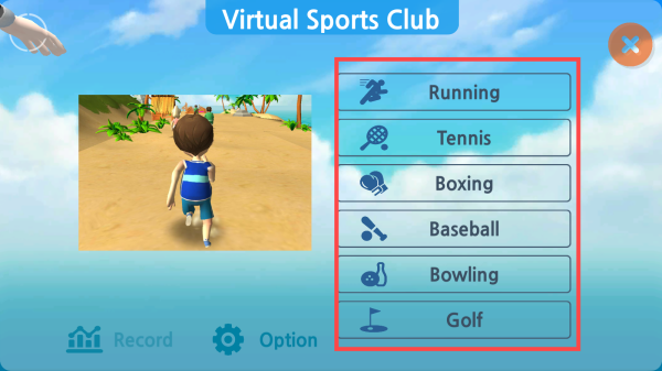 2、在项目选择界面,点击【箭头】所指的“Running”选项,进入跑步游戏环节。