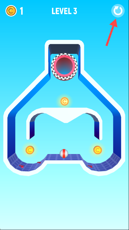 2、游戏中如需重新开始,点击【LEVEL 3】界面右上角箭头所指的重置图标。