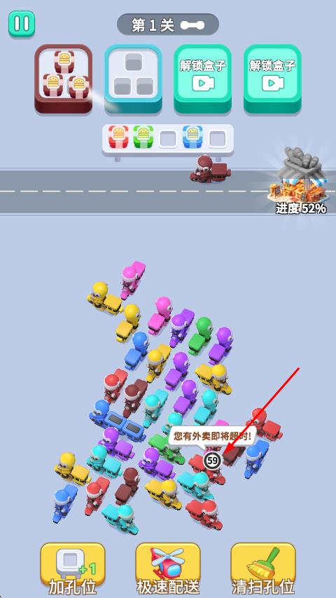 3、画面简洁明快:简洁的画面风格,突出骑手颜色和订单信息,使玩家专注于分配任务,提升游戏体验。