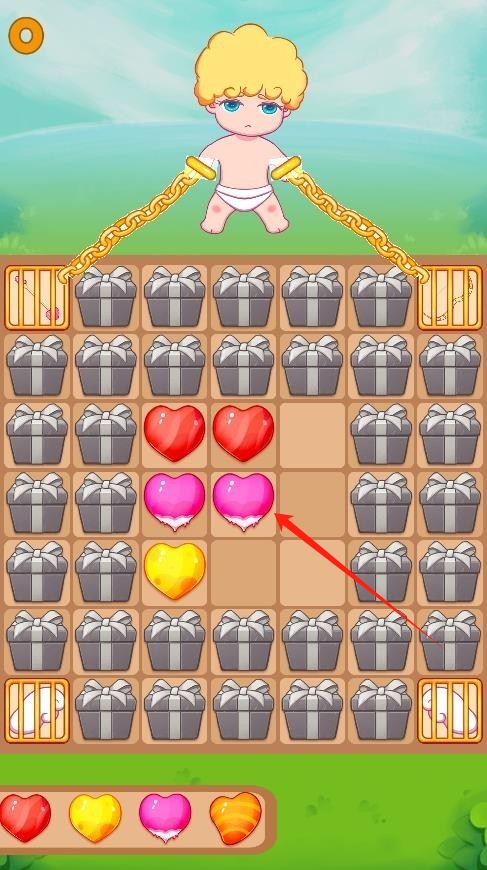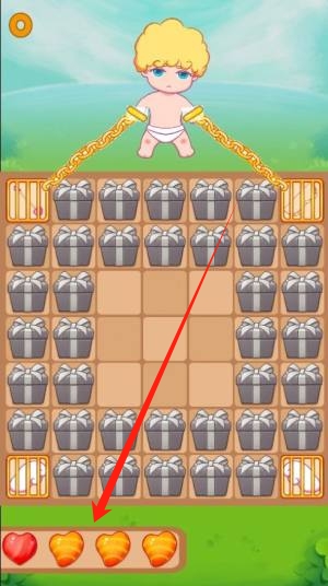 2、注意利用游戏中的道具系统,炸弹适合清除密集区域障碍,彩虹糖配合特定颜色糖果可快速清空屏幕。优先消除靠近丘比特的障碍物,缩短解救路径。